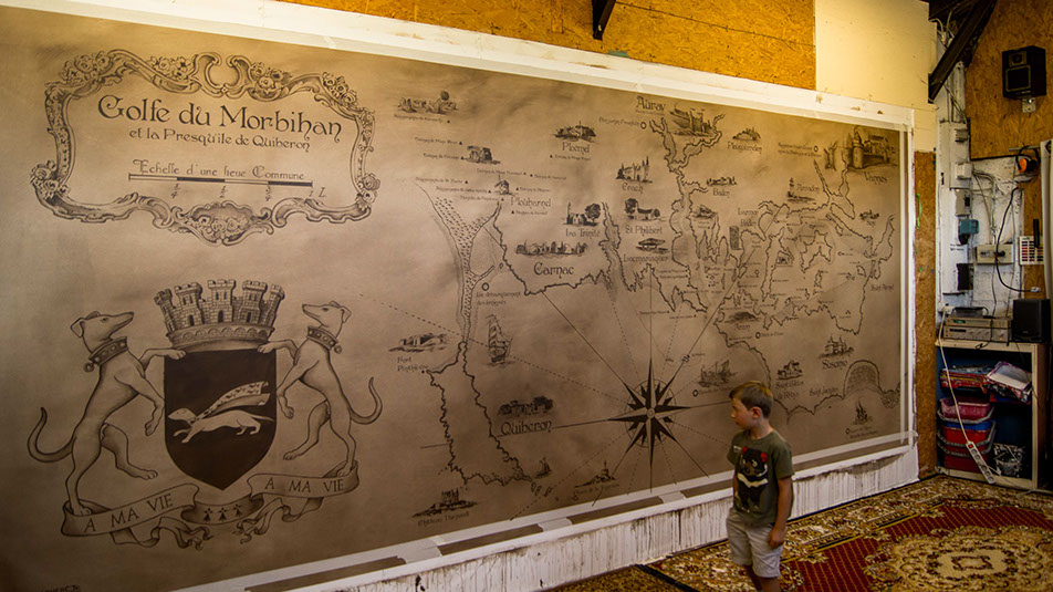 Carte ancienne de la Bretagne peinte dans le restaurant du musée Breizh Odyssée à Landevennec.2