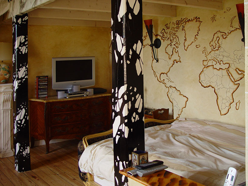 Map monde peinte dans une belle maison secondaire à Carantec, peintures à l'huile.