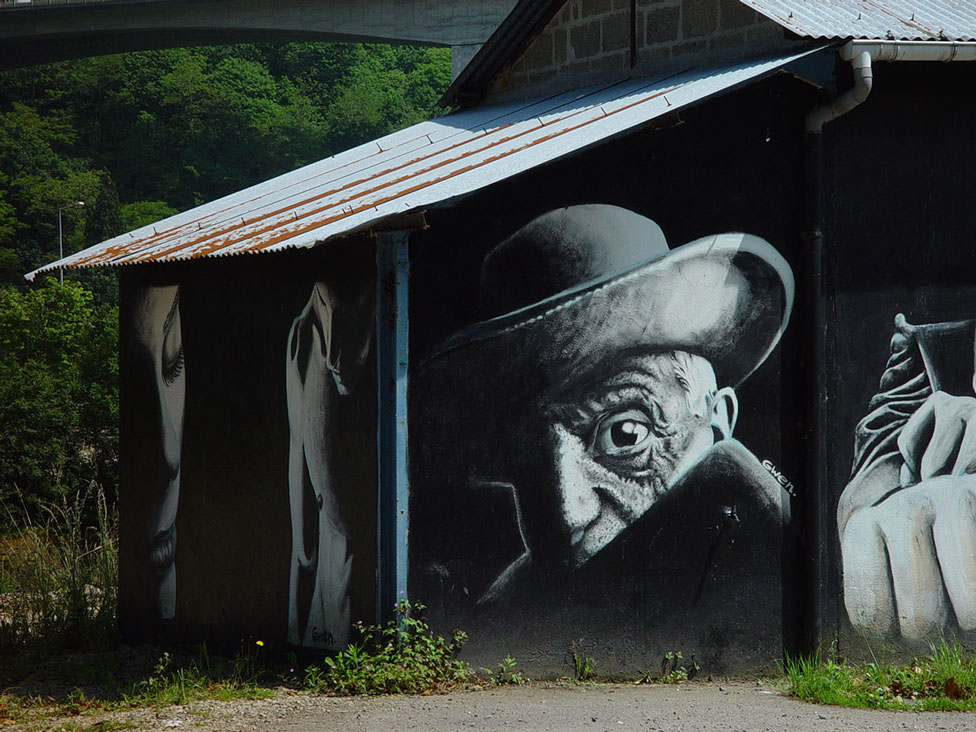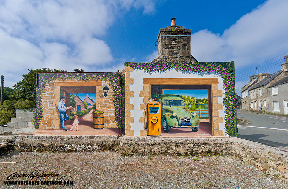Fresque en Trompe-l’œil peintures des mont d'arrées avec une vieille dodoche.