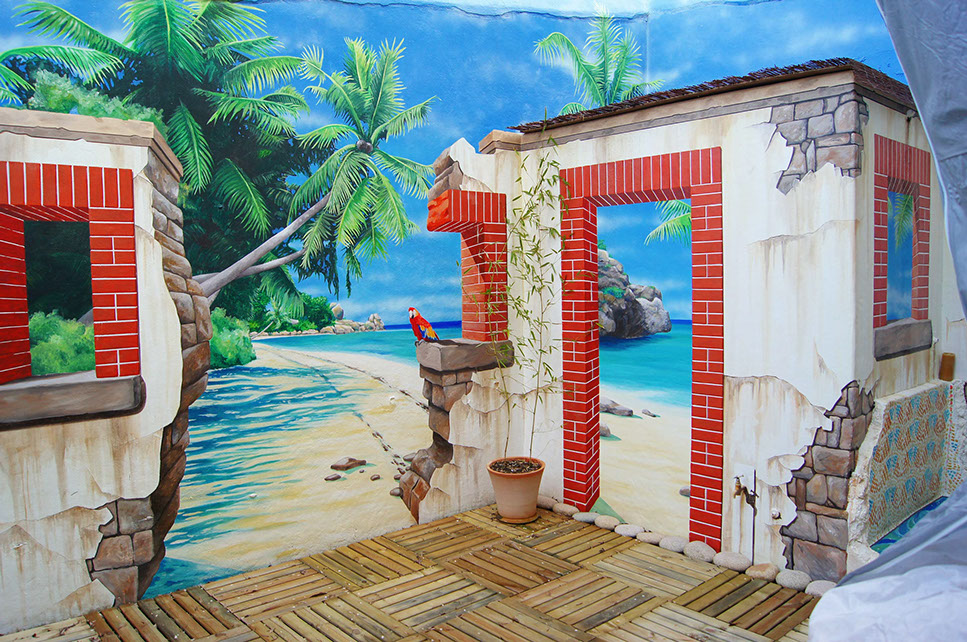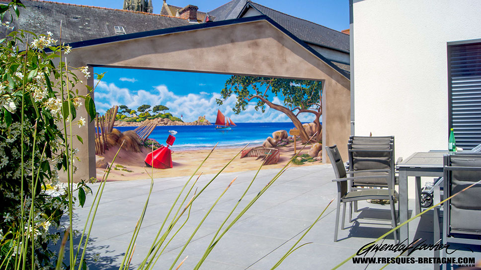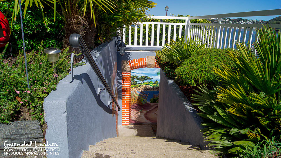 trompe-l’œil peint à Locquirec dans un jardin de particuliers.