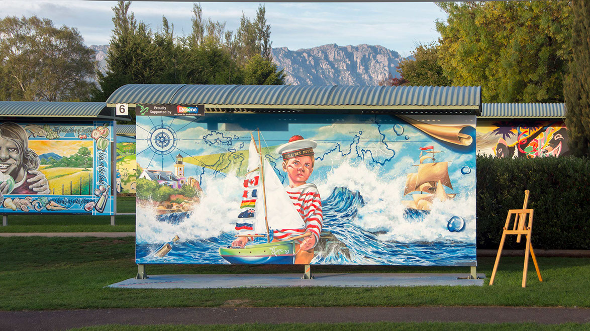 Fresque de marine peinte lors du festival "Mural fest en Tasmanie"