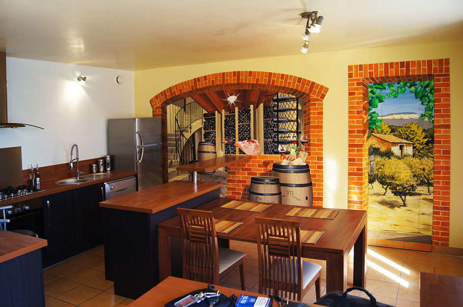 Celà permet de se rendre compte à quel point une fresque peinte, un trompe-l’œil, transforment et enrichissent les murs, les lieux.
