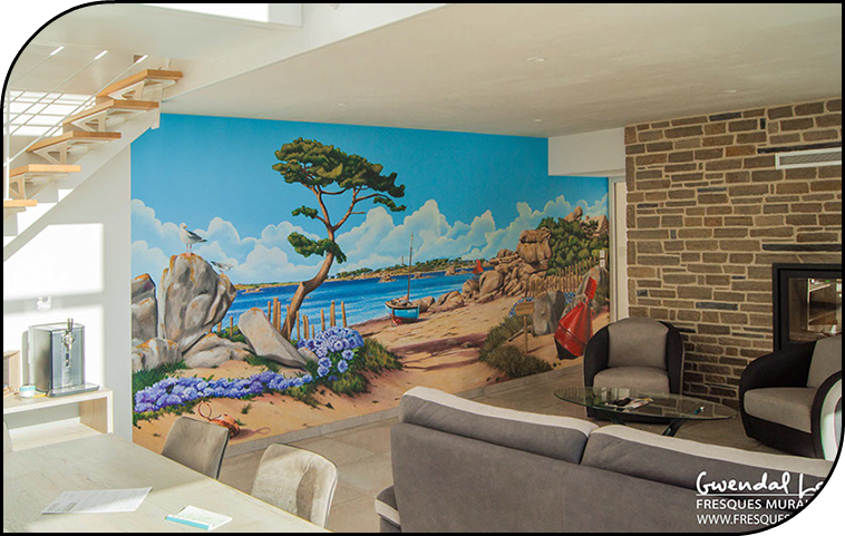 Artiste peintre muraliste en Bretagne depuis 26 ans, je conçois, réalise et peint à la main des fresques murales et décors pour entreprises, particuliers, hôtels, restaurants et collectivités.