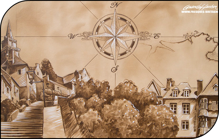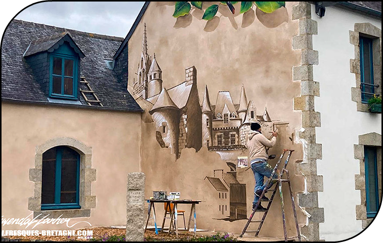 Ce projet de trompe-l’œil illustre ma démarche artistique visant à mettre en valeur les espaces publics tout en respectant l’architecture Bretonne.