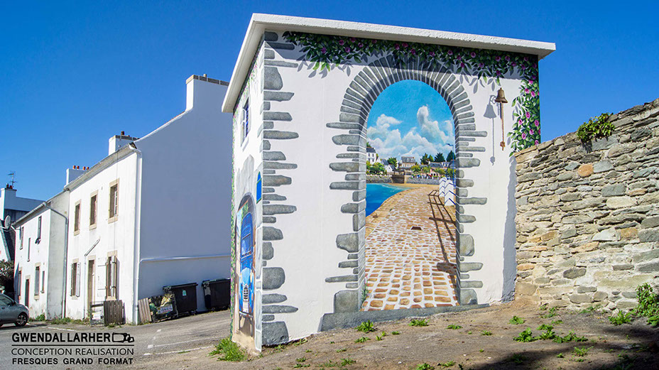 Artiste muraliste en Bretagne, je réalise des fresques murales, trompe-l’œil et projets de street art pour collectivités, entreprises et particuliers.