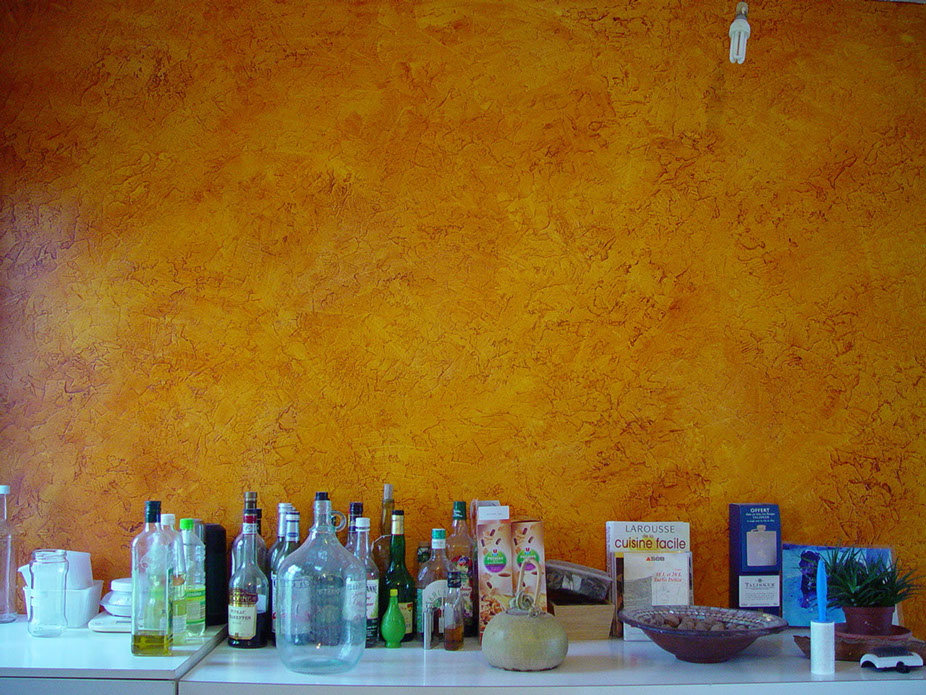 Réalisation d'une patine à l'enduit pour cette cuisine.