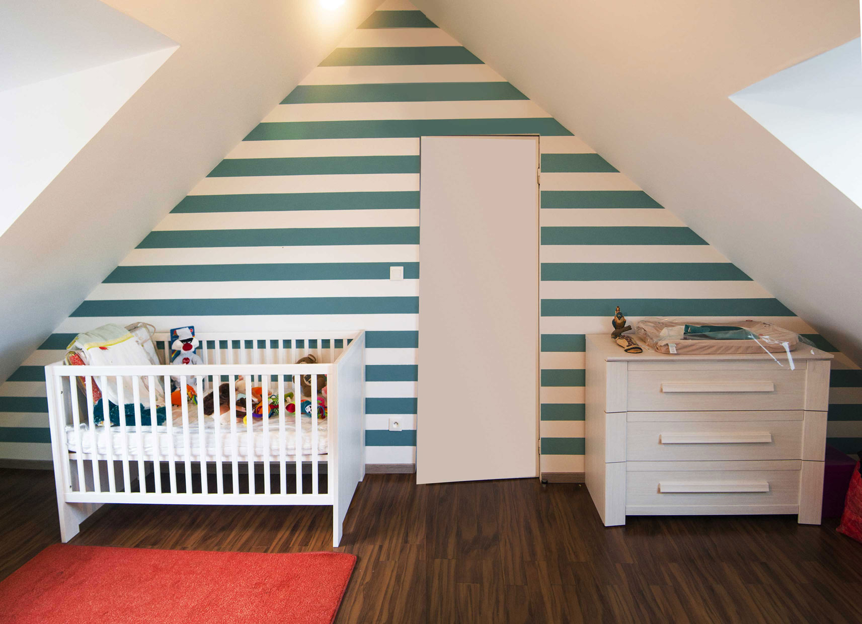 Décoration de style marine pour cette lumineuse chambre de nouveau née.