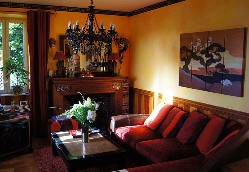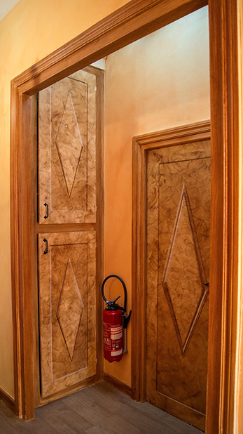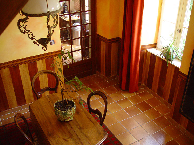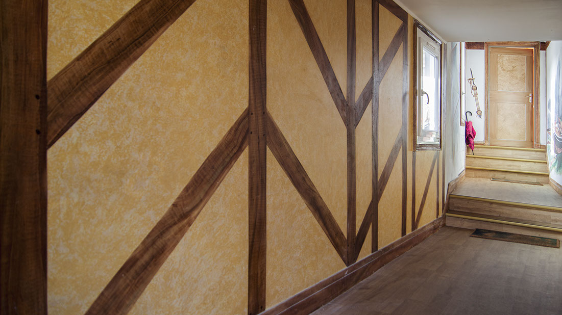 Imitations de bois et patines sur les murs de cette belle demeure.