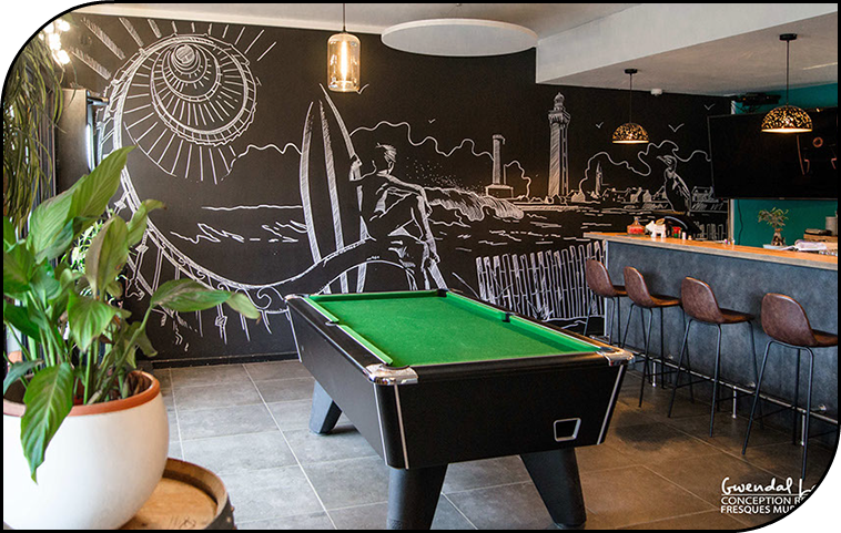 Artiste peintre muraliste en Bretagne depuis 26 ans, je conçois, réalise et peint à la main des fresques murales et décors pour entreprises, particuliers, hôtels, restaurants et collectivités.