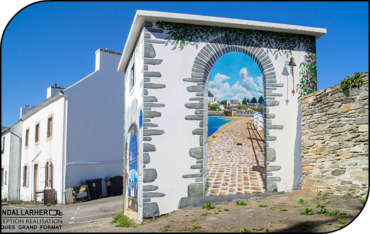 Ce projet de trompe-l’œil illustre ma démarche artistique visant à mettre en valeur les espaces publics tout en respectant l’architecture Bretonne.