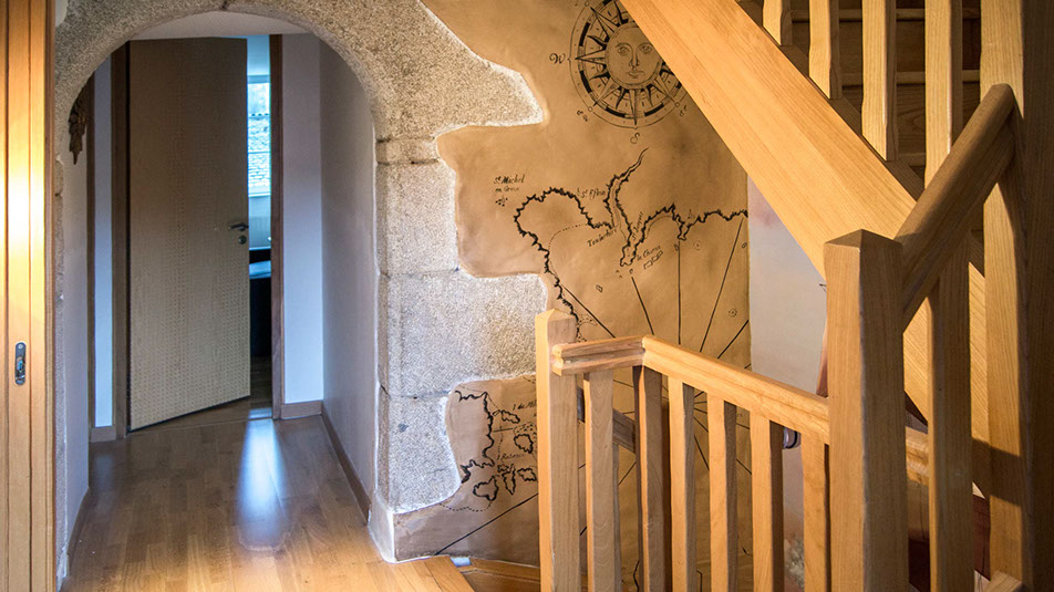Map monde peinte dans une belle maison secondaire à Carantec, peintures à l'huile.