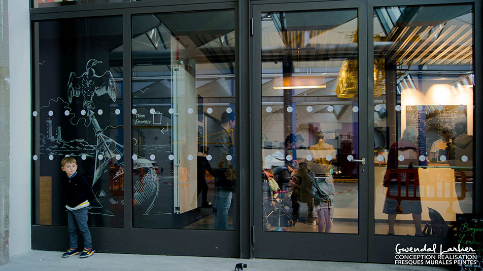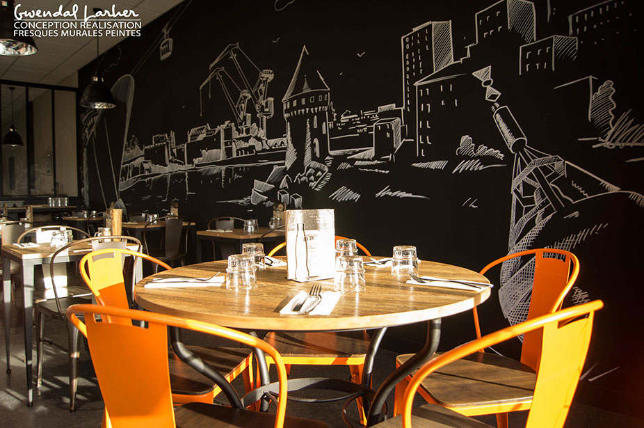 Décors de style indus pour la crêperie "Gwenn ha Du " à Quimper, dessin crayon Posca.