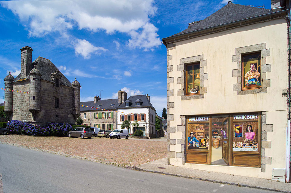 "La boulangerie" trompe-l’œil ; circuit de fresque commune de Guerlesquin.