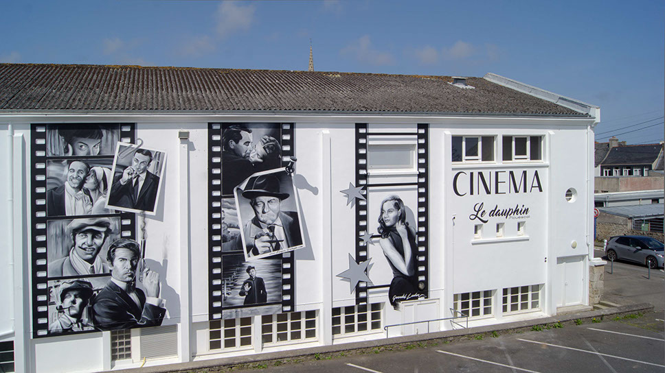 La grande fresque du Cinéma le Dauphin peinte à Plouescat.
