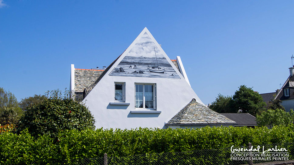Peinture maritime venant habiller le pignon de cette maison de bord de mer.