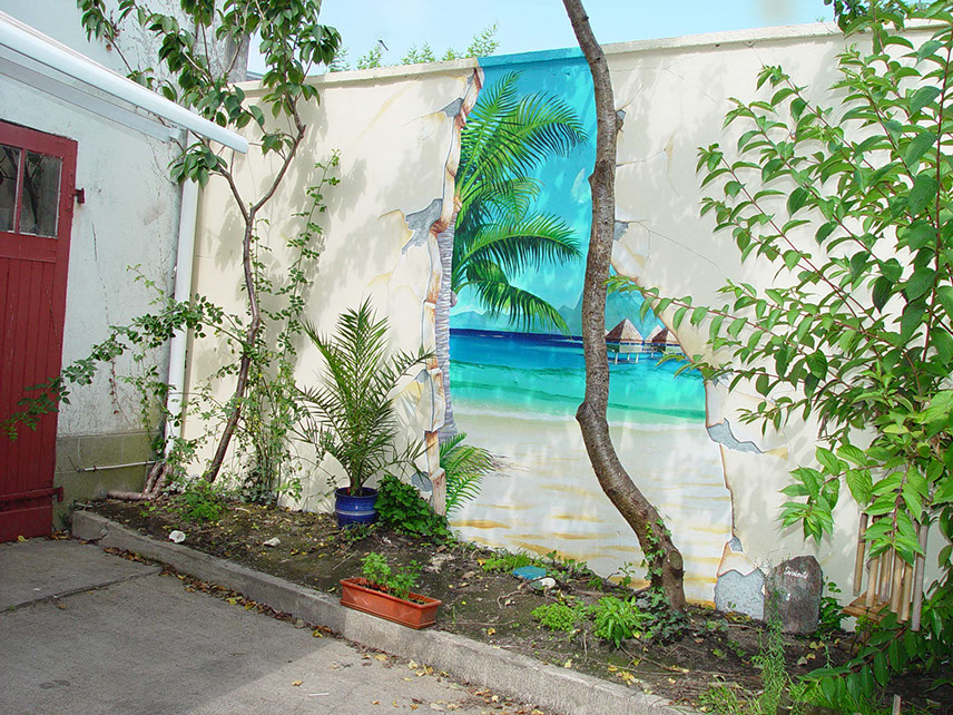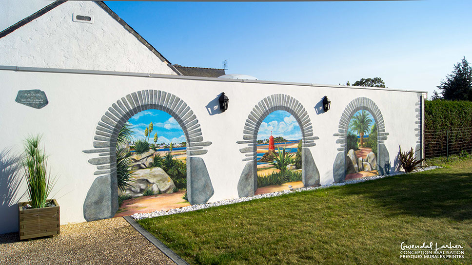 trompe-l’œil peint à Locquirec dans un jardin de particuliers.