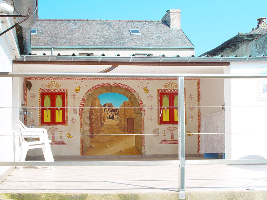 Fresque en trompe-l’œil réaliser pour la crêperie Avel Zo à Plestin les grêves.