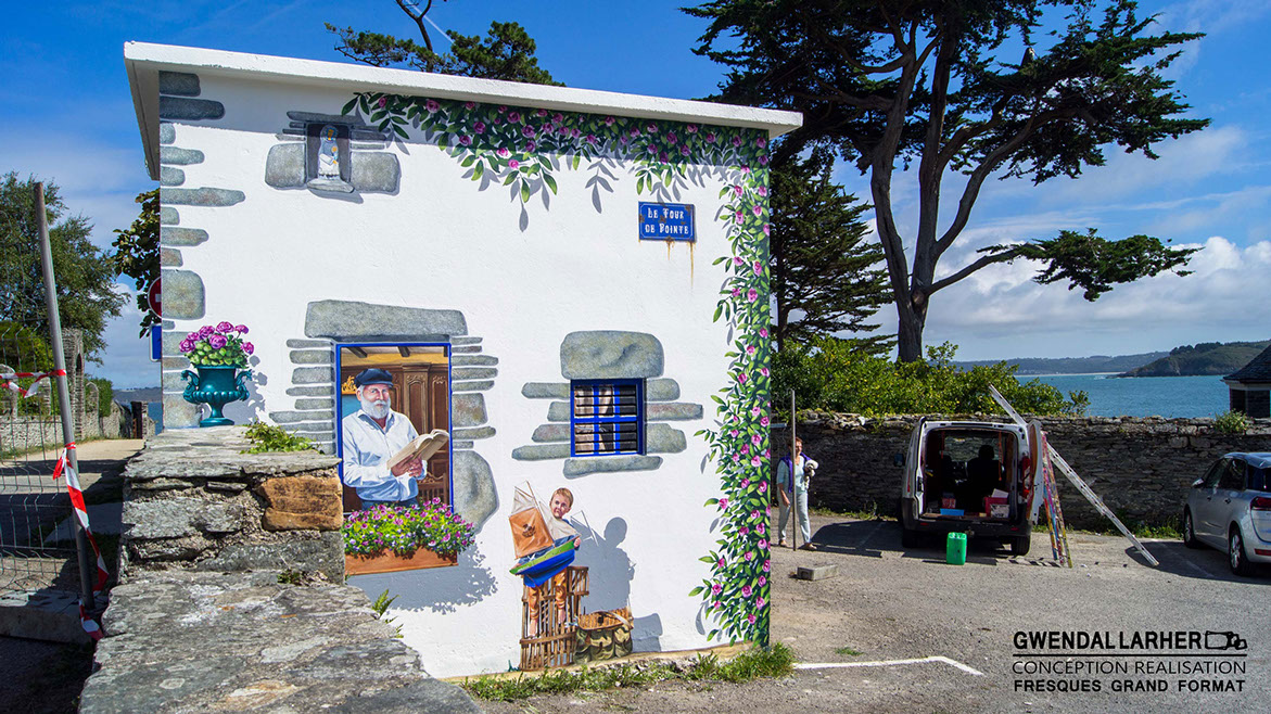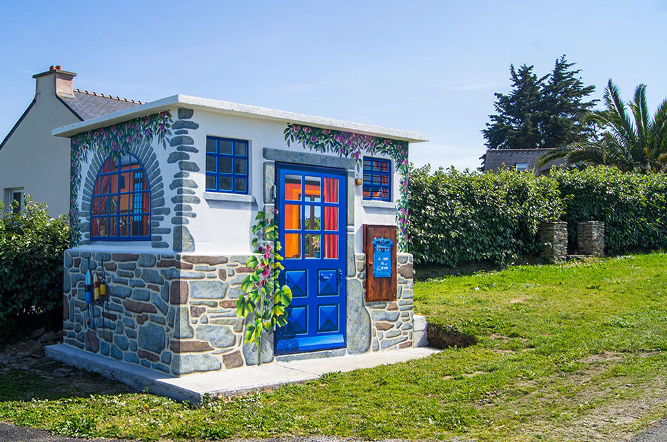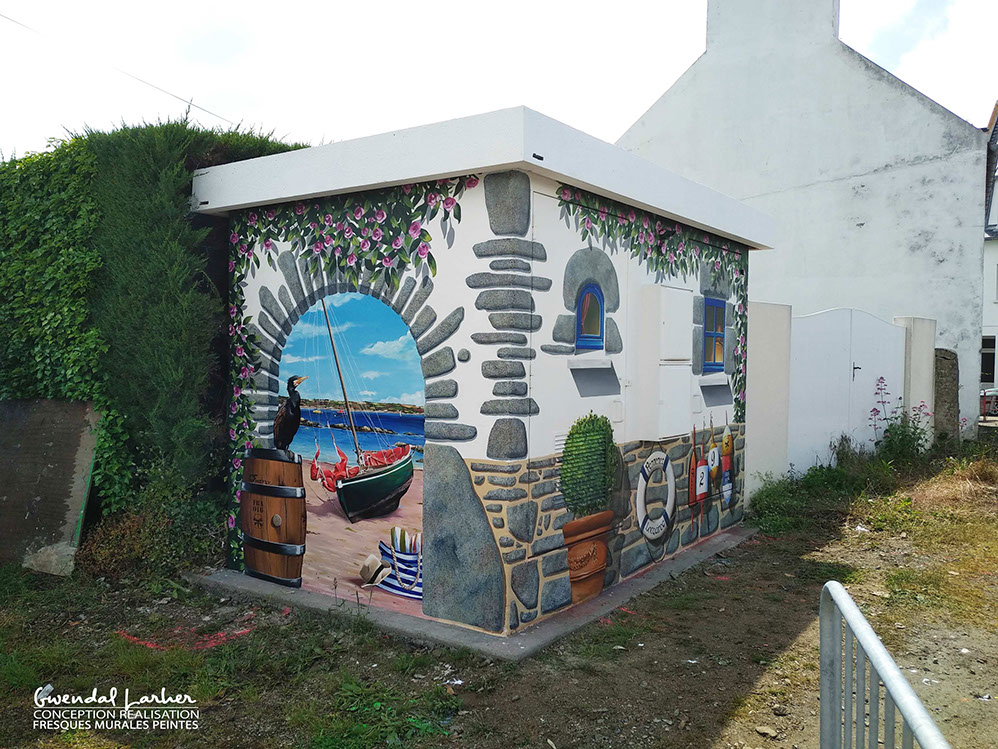 Fresque en trompe-l’œil réalisée sur un transformateur electriqque ERDF à Locquirec.