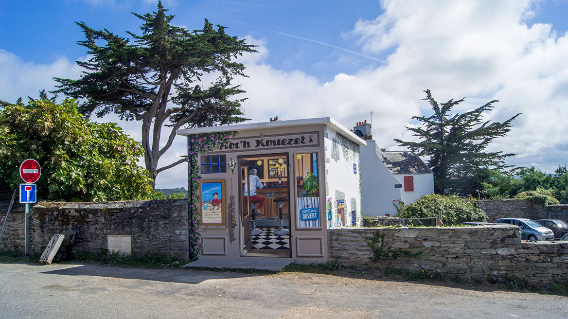 Fresque en trompe-l'oeil peinte sur une maison cube à l'île grande Trébeurden.